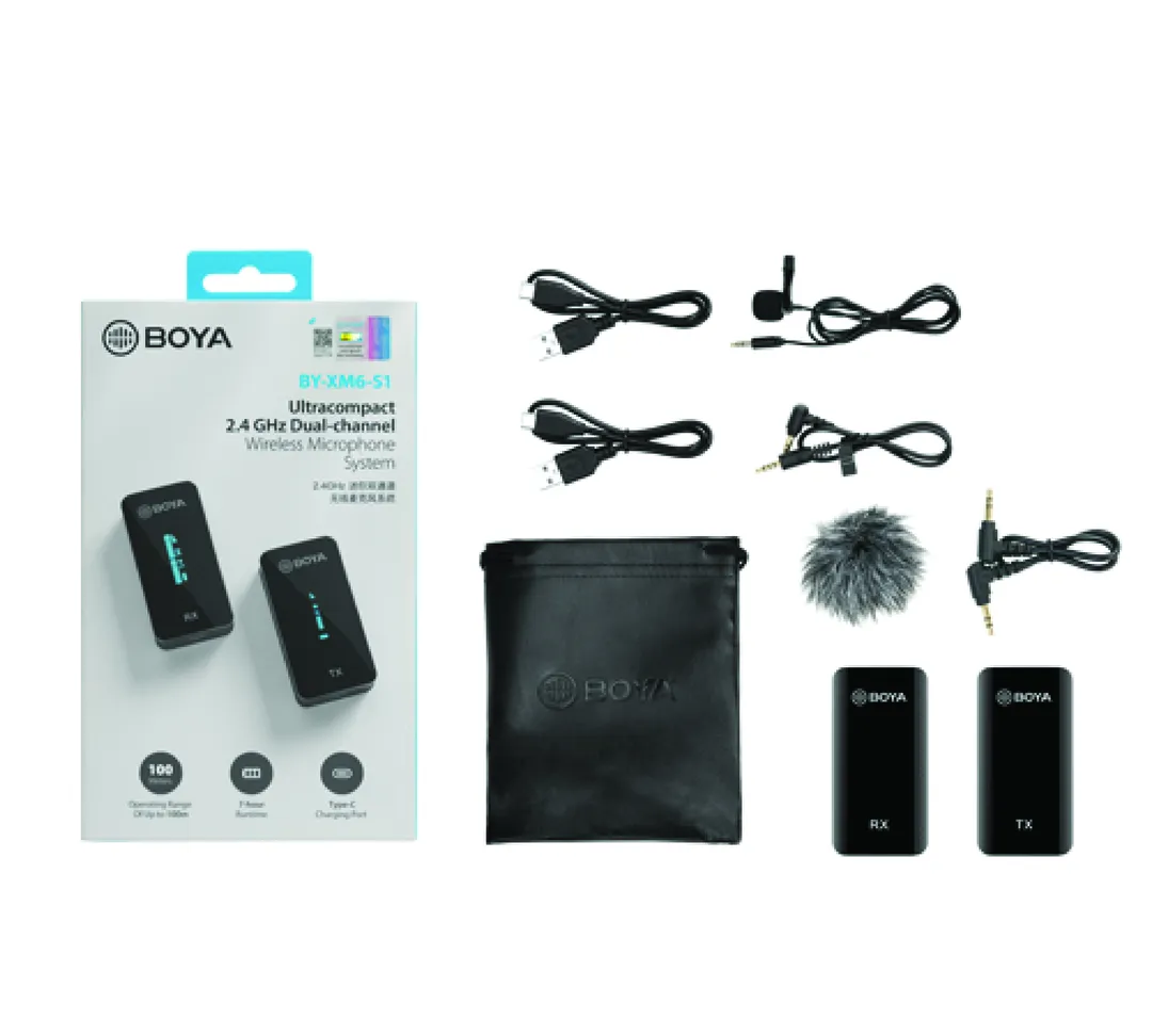 The BOYA XM6‑S1 is a professional single‑transmitter wireless microphone system designed for cameras, smartphones, and content creators. Built with 2.4GHz digital wireless transmission technology, it delivers stable, low‑latency audio with clear and natural voice capture.